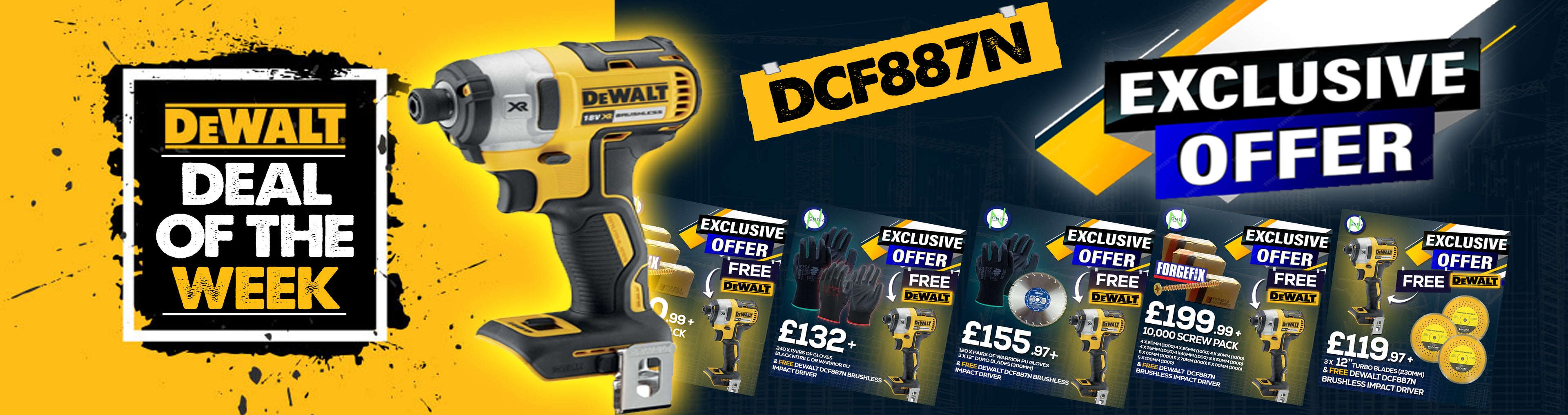 120 x Gloves, 3 x 12" Blades Free DCF887N Impact Driver