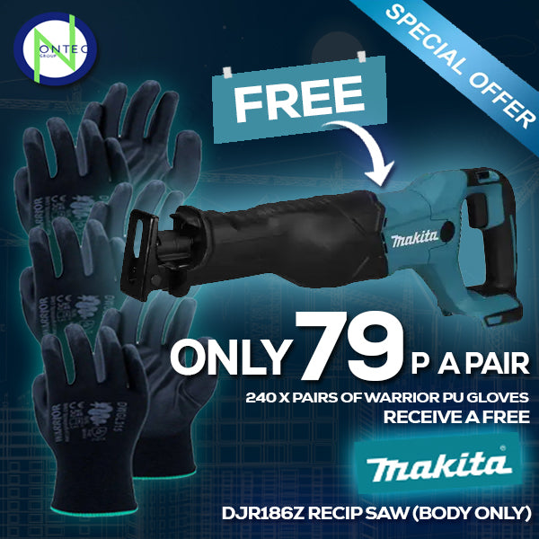 Purchase 240 x PU Gloves at only 79p a pair and receive a FREE Makita DJR186Z Recip Saw (Body Only)